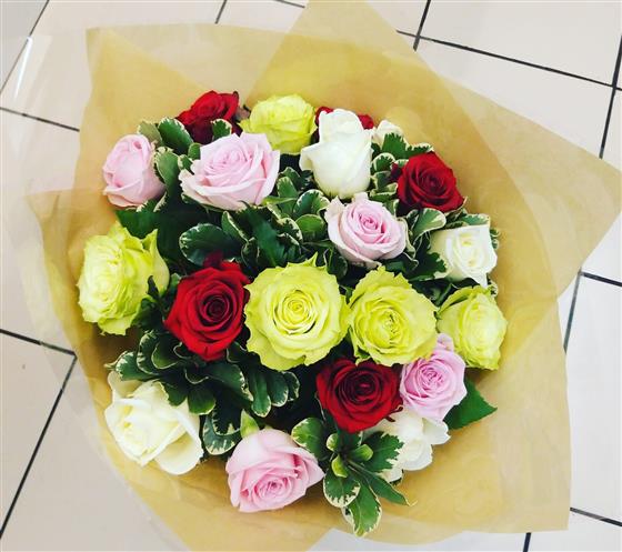 Colourful roses, beautifully hand made and aqua packed to last long and for easy display.